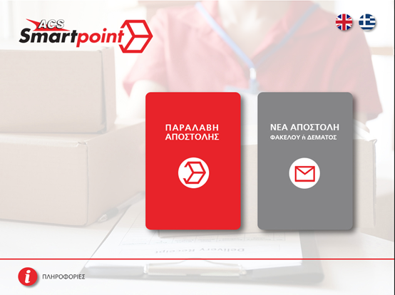 Στην οθόνη του ACS Smartpoint Locker, επιλέξτε «ΠΑΡΑΛΑΒΗ ΑΠΟΣΤΟΛΗΣ».