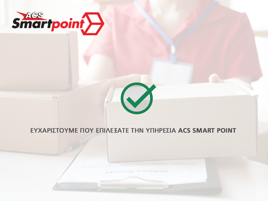 Τώρα, μπορείτε να παραλάβετε την παραγγελία σας από ένα ACS Smartpoint Locker σε λιγότερο από 15’’, 24ώρες την ημέρα, 7 μέρες την εβδομάδα! Με δυνατότητα ασφαλούς πληρωμής στο τερματικό POS του Locker (με κάρτες Visa και Mastercard), αλλά και με δωρεάν ενημέρωση για την πορεία της αποστολής (με Viber/sms και e-mail).