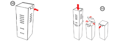 Στην συνέχεια κλείνετε την ασφάλεια στο πάνω μέρος της σχάρας και τοποθετείτε την εσωτερική συσκευασία στο προστατευτικό εξωτερικό κουτί. (εικόνα 10 και 11)
